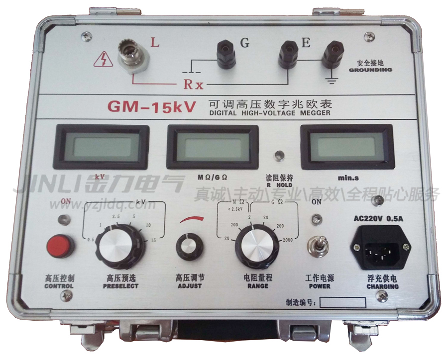 GM系列可調高壓數字兆歐表測試電壓高,出力強,被測量對象往往又帶有工頻泄漏或感應上高壓干擾電能,使用本儀器首先一定要接好接地線!!